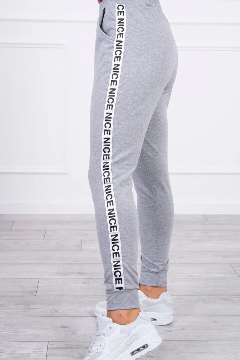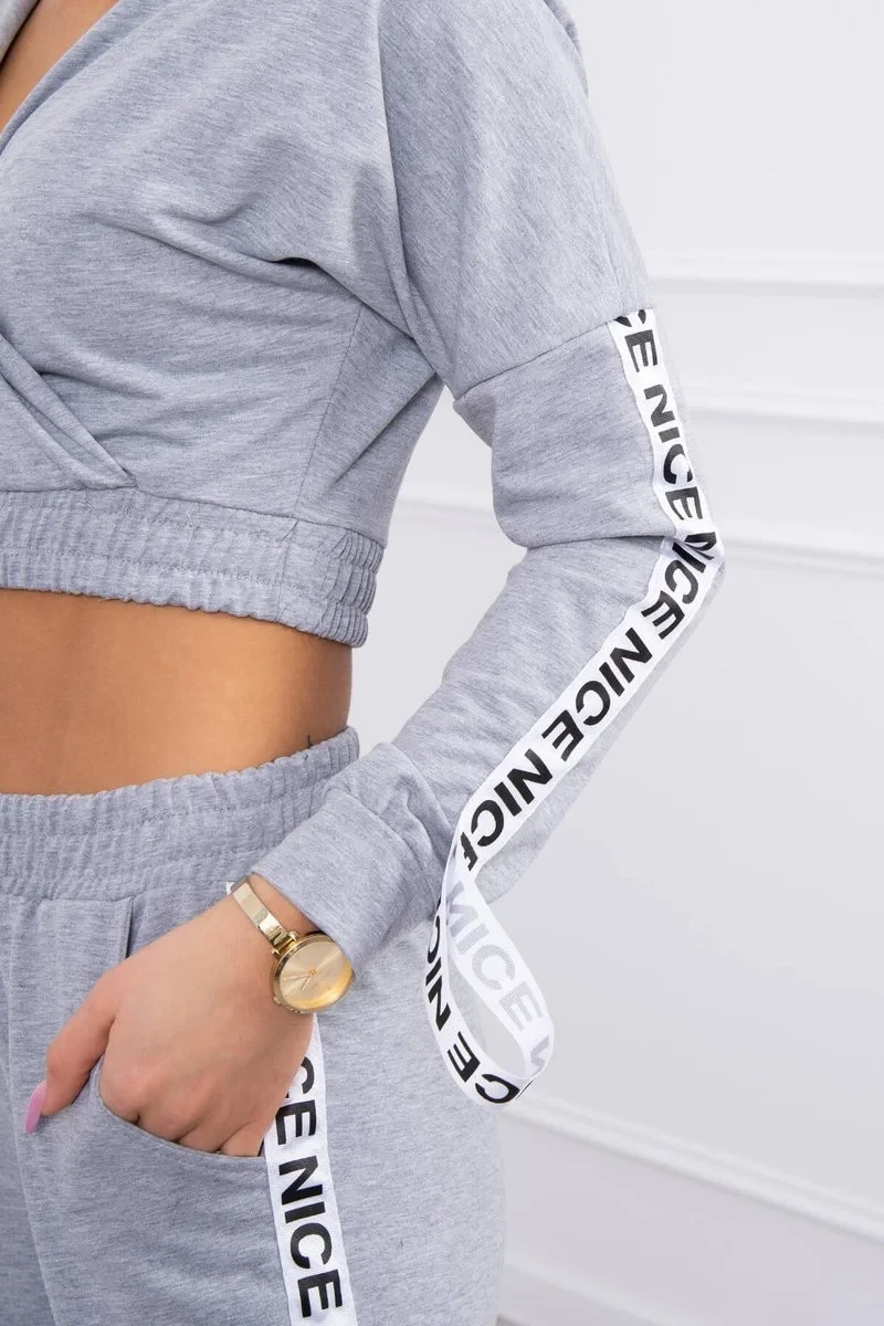 Představujeme vám sadu mikiny a kalhot. Mikina a kalhoty mají ozdobnou stuhu s nápisem. Ve spodní části mikiny je všitá guma. Kalhoty s kapsami. Velmi módní a stylová sada. Sada je vyrobena z vysoce kvalitního materiálu. Velikost je univerzální a vyhovuje dámám velikosti S, M nebo L.