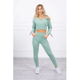 Představujeme vám sadu mikiny a kalhot. Mikina a kalhoty mají ozdobnou stuhu s nápisem. Ve spodní části mikiny je všitá guma. Kalhoty s kapsami. Velmi módní a stylová sada. Sada je vyrobena z vysoce kvalitního materiálu. Velikost je univerzální a vyhovuje dámám velikosti S, M nebo L.
