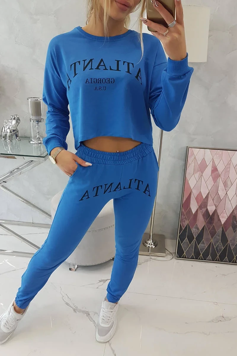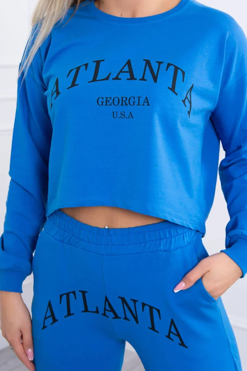 Představujeme vám sadu halenky a kalhot. Halenka s potiskem Atlanta. Kalhoty s kapsami a zavazováním v pase. Sada je vyrobena z vysoce kvalitního materiálu. Velikost je univerzální a vyhovuje dámám velikosti S, M nebo L.
