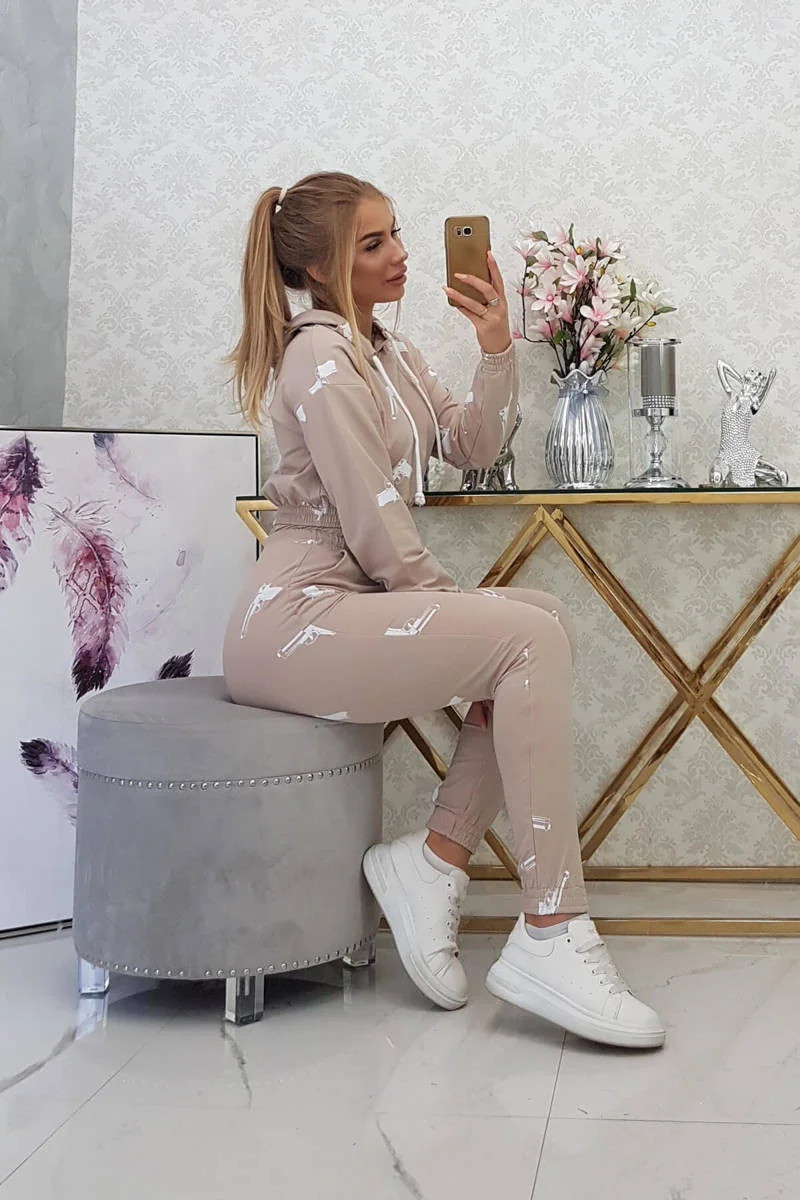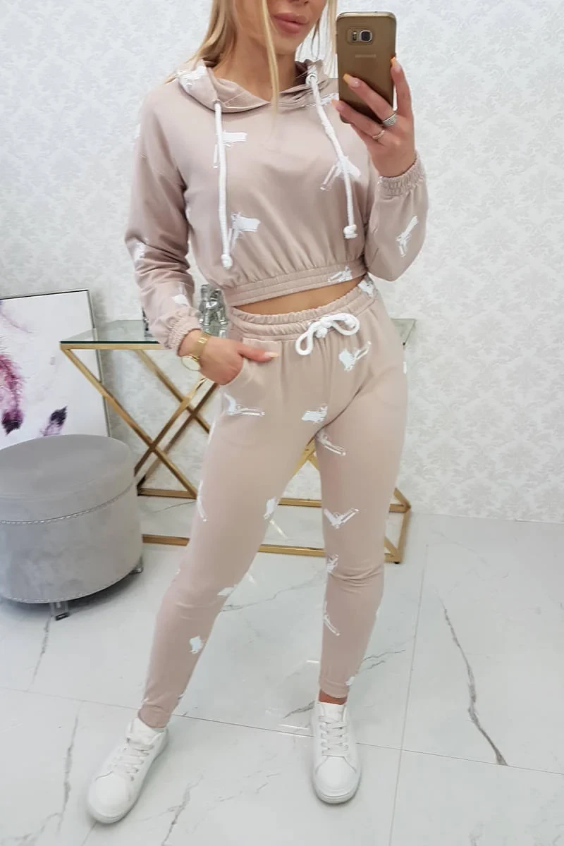 Představujeme vám sadu mikiny a kalhot. Mikina a kalhoty s potiskem. Mikina má kapuci a stahovací lem. Kalhoty mají naopak kapsy a stahovací pásek. Sada je vyrobena z vysoce kvalitního materiálu. Velikost je univerzální a vyhovuje dámám velikosti S, M nebo L.