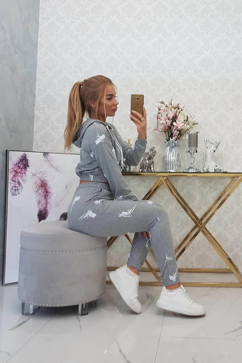 Sada s potiskem pistole šedá