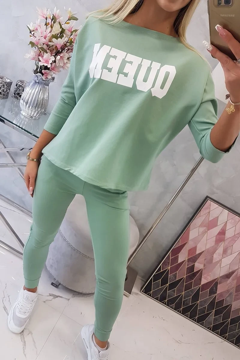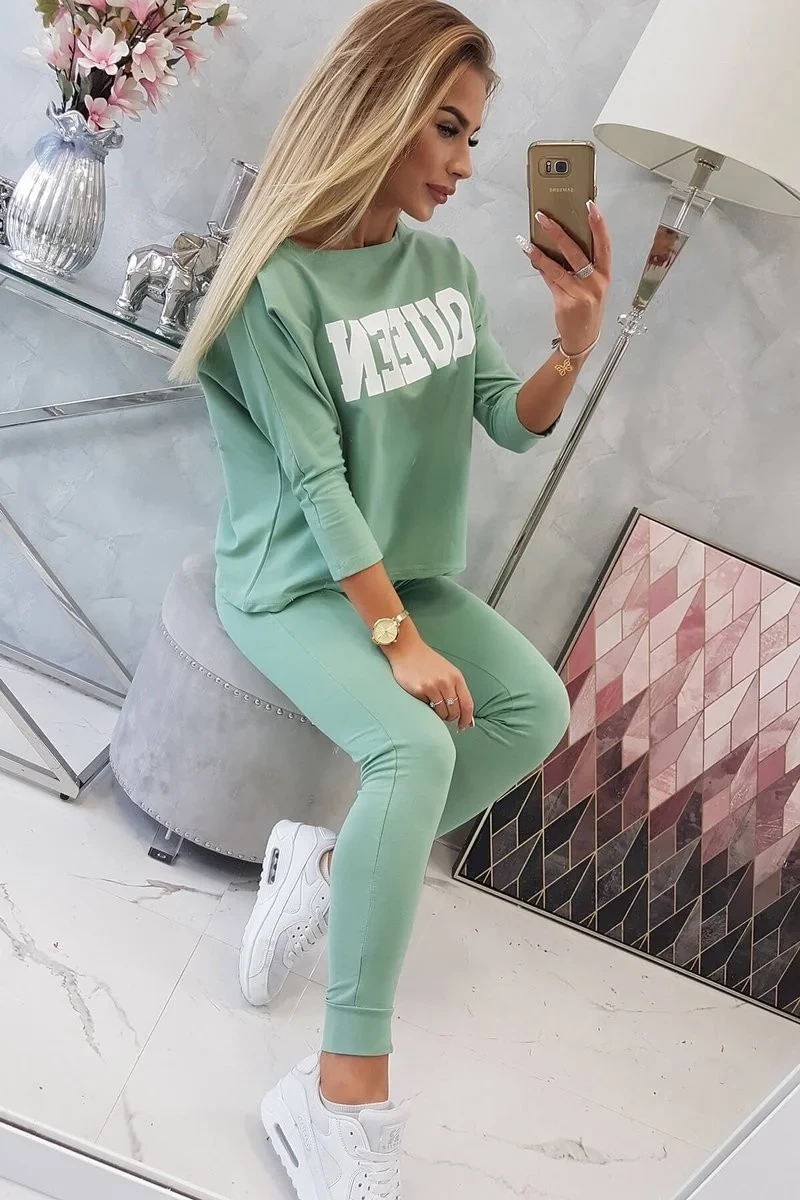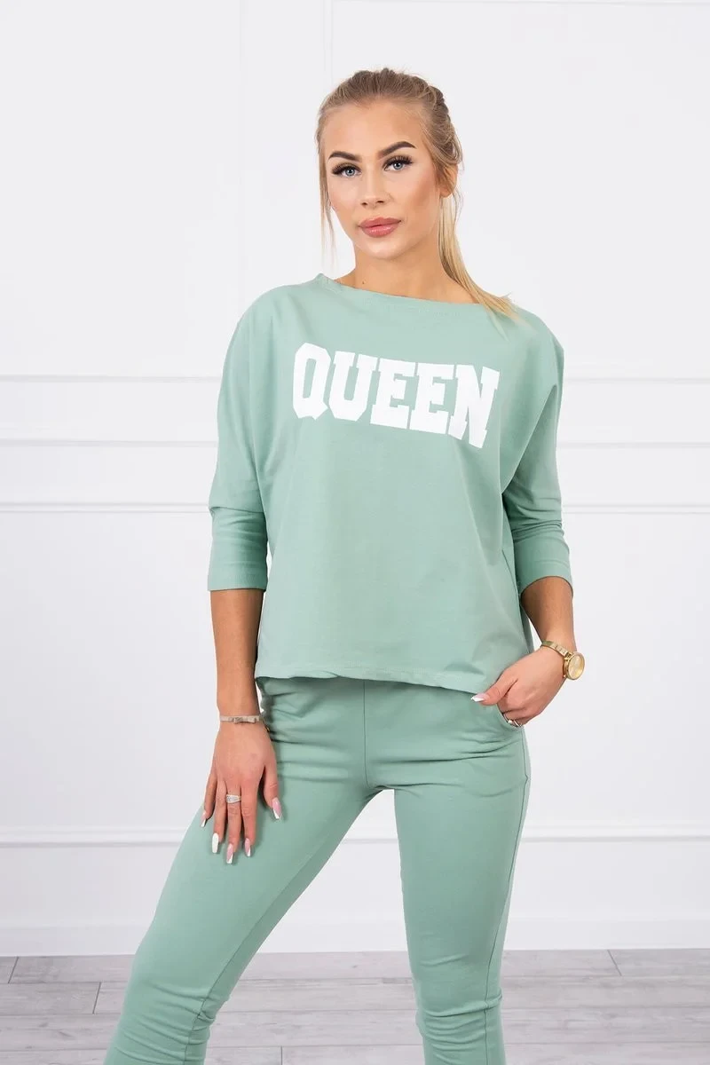 Sada s potiskem Queen tmavě mátová