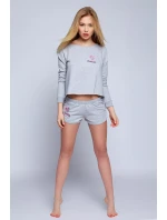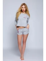 Velmi cool dvoudílná souprava v decentní šedé barvě, ideální na spaní a/nebo jako domácí oblečení. Bavlněná, s růžovou nášivkou ve tvaru malého srdíčka. Spodní část halenky je záměrně nedokončená, což celý vzhled obzvlášť zaujme. Součástí jsou krátké šortky s kapsami. 92 % bavlna, 8 % polyester.