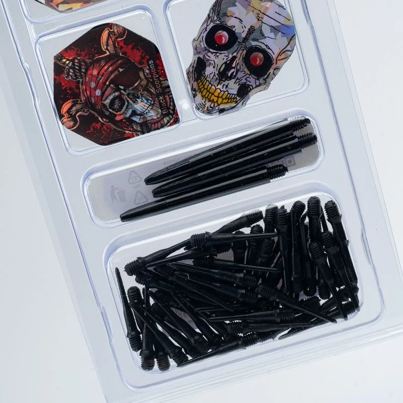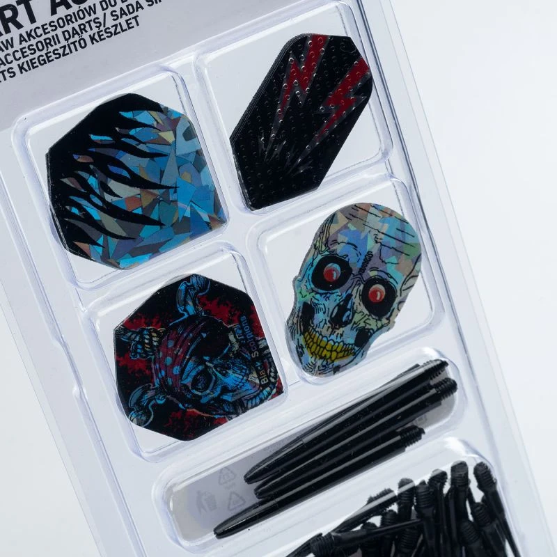 LOTKI DO DARTA SKŁAD MATERIAŁOWY: PIÓRKO: PET SHAFT (NASADKA): NYLON MIĘKKI GROT: NYLON SPECYFIKACJA: PIÓRKA: 12 SZT. SHAFTY (ŁĄCZNIKI): 3 SZT. MIĘKKIE GROTY: 50 SZT.