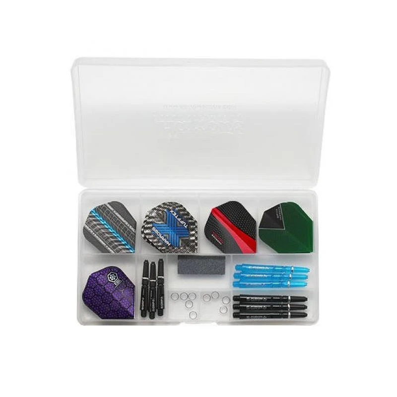 Profesionální sada příslušenství k šipkám, všechny položky z nejnovějších kolekcí, vše v praktické krabičce.