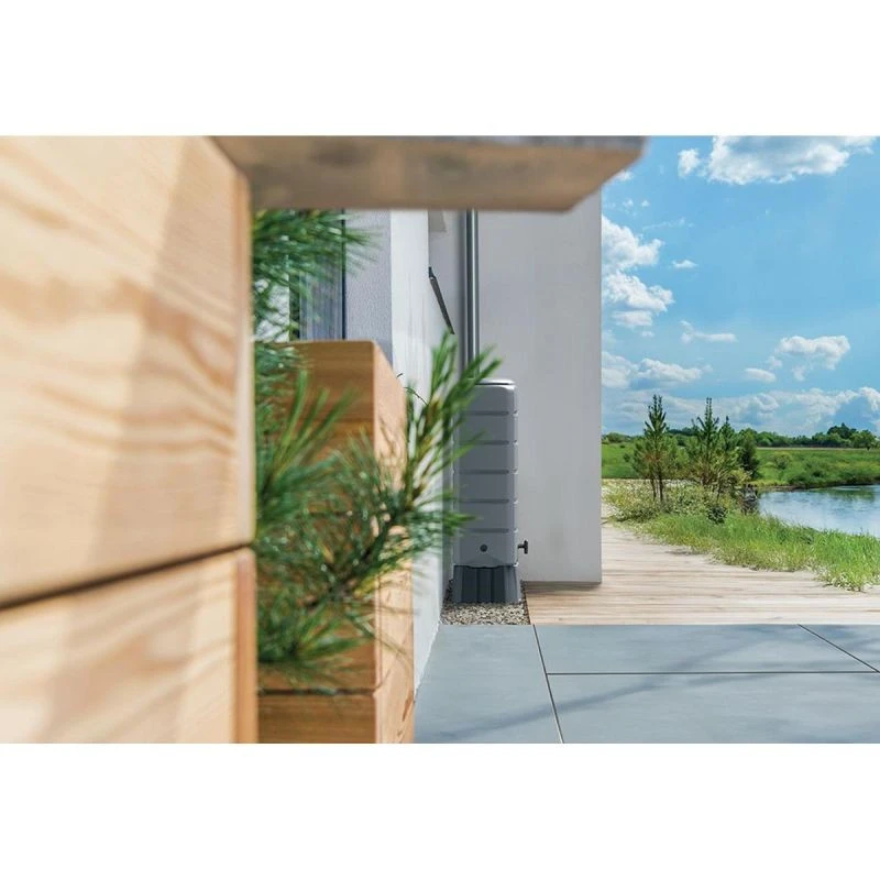 Díky přiložené stabilní základně lze nádrž umístit výše, což usnadňuje čerpání vody pomocí kohoutku nebo zahradní hadice. Základna také poskytuje dodatečnou stabilitu, čímž snižuje riziko převrácení nádrže na nerovném povrchu.