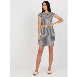 Rozměry soupravy ve velikosti S měřené na plocho: šířka topu v podpaží - 40 cm (na plocho), šířka topu v podpaží - 65 cm (při natažení), šířka dole - 31 cm, délka topu - 39 cm, šířka sukně v pase - 34 cm (na plocho), šířka sukně v pase - 52 cm (při natažení), délka sukně - 52 cm.