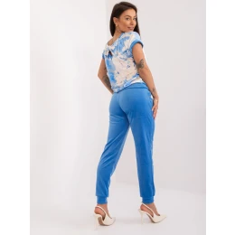 Rozměry soupravy ve velikosti S měřené na plocho: šířka halenky v podpaží - 49 cm, délka halenky - 58 cm, šířka kalhot v pase - 33 cm, výška kalhot v pase - 28 cm, délka kalhot - 95 cm.