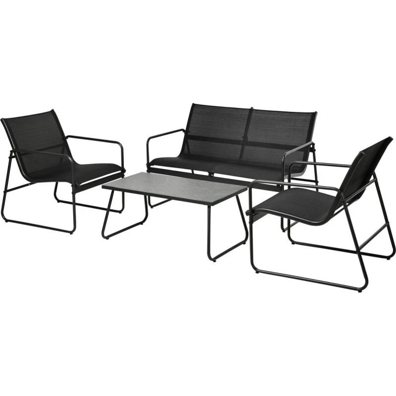 SADA 4 DÍLŮ ČERNÉHO ZAHRADNÍHO NÁBYTKU je dokonalým řešením pro ty, kteří si cení elegance, pohodlí a odolnosti. Skvěle se hodí pro každou příležitost - od každodenního odpočinku u kávy až po venkovní večírky. Vytvořte si stylové posezení a užívejte si pohodlí, které tato sada nabízí.