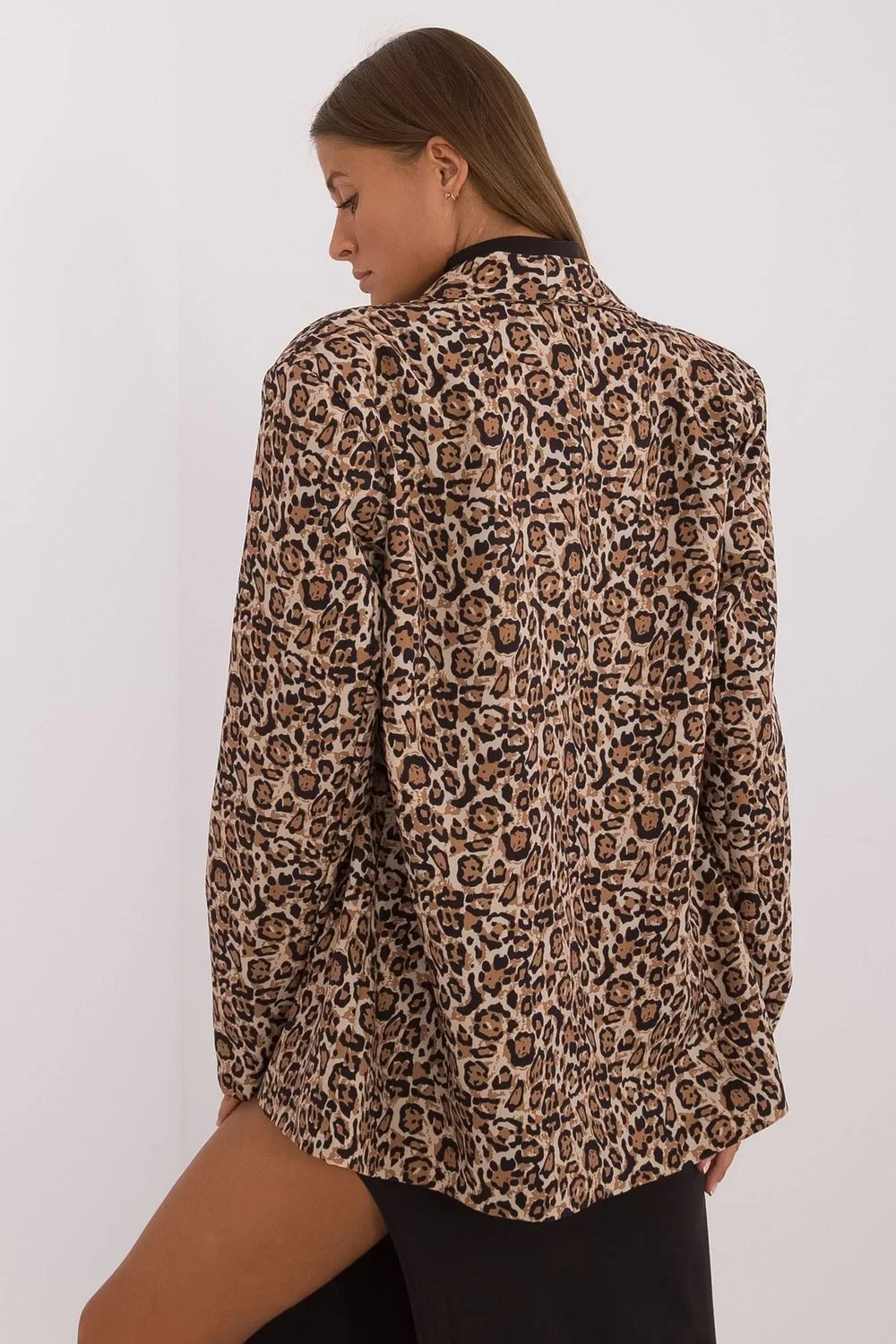 Dámský sako s stylovým zvířecím motivem, ideální pro různé příležitosti, od každodenních vycházek, přes pracovní setkání až po slavnostní a večírkové stylizace. Vyrobeno z kombinace polyesteru a elastanu, co zajišťuje pohodlí a lehkost. Sako má dlouhý rukáv a standardní délku, stejně jako elegantní podšívku, která dodává rafinovaný vzhled. Tento model nemá zapínání, co celku dodává moderní a volný charakter. To je skvělá volba pro ženy, které chtějí přidat svým stylizacím trochu výrazu.