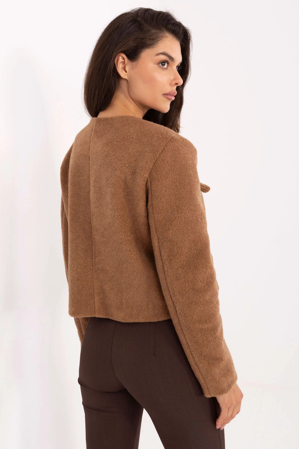 Elegantní dámský sako s krátkým střihem, ideální na každý den, do práce i na slavnostní události. Vyrobený z polyesteru a s podšívkou zajistí pohodlí a bezchybný vzhled po celý den. Model má hladký vzor, dlouhé rukávy a klasické zapínání na knoflíky, co zdůrazňuje jeho nadčasový charakter. Univerzální střih se skvěle hodí jak k elegantním kalhotám, tak ke sukní, vytvářející stylový a profesionální vzhled.
