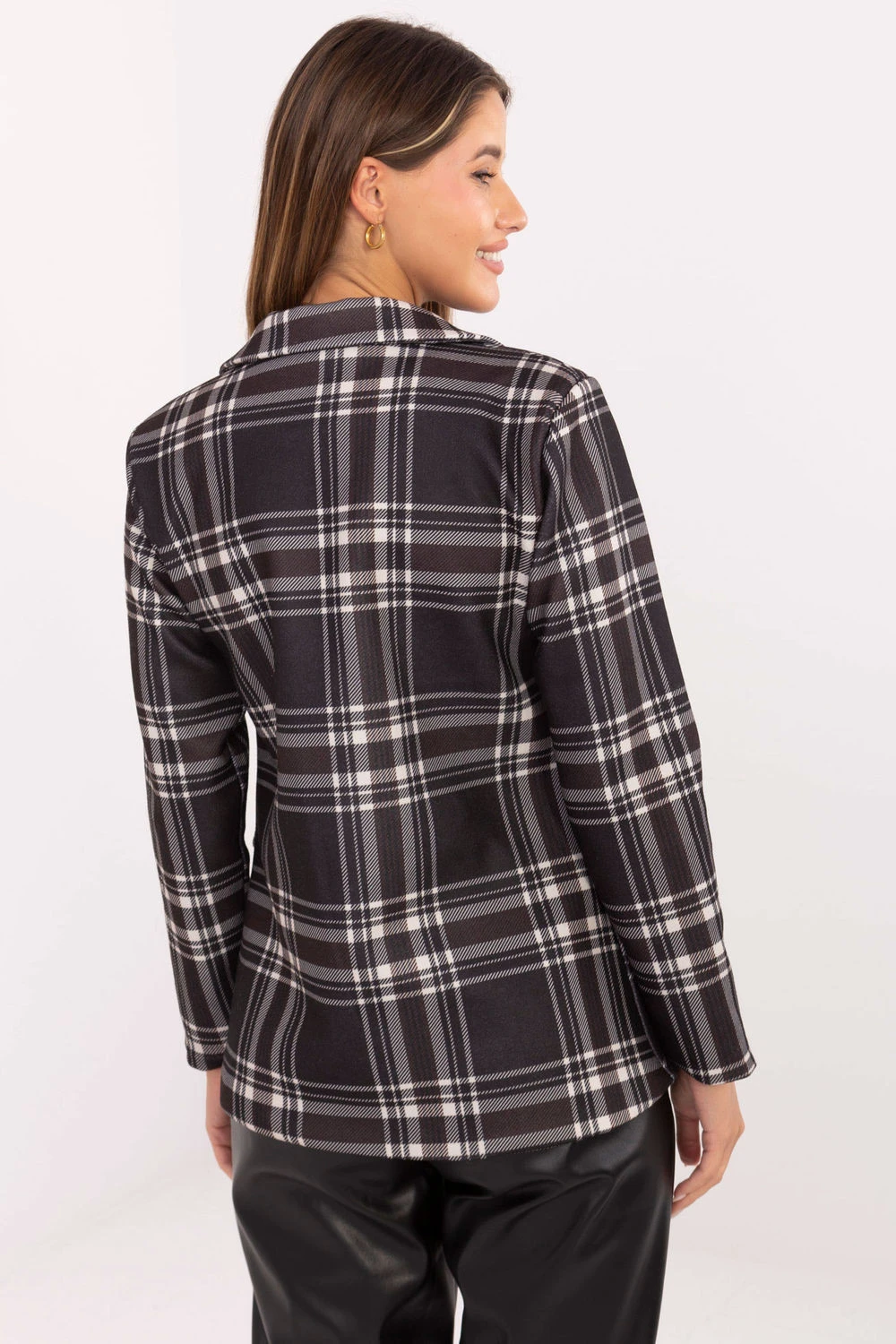 Dámský kostkovaný oblek v casual stylu je ideální volbou na každý den i do práce. Vyrobena z vysoké kvality polyesteru s podšívkou zajistí pohodlí a odolnost. Vložené polštářky na ramenou a přeložené límce dodávají siluetě strukturu, a jednořadé zapínání na knoflík zdůrazňuje elegantní charakter modelu. Dlouhý rukáv a standardní délka dělají z tohoto obleku skvělý doplněk jak klasických kalhot, tak šatům, vytvářející stylový a nadčasový outfit.