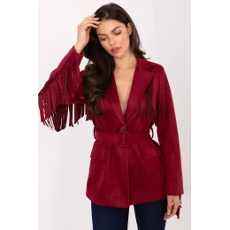 Elegantní a jedinečný semišový sako v casual stylu, ideální na každý den. Vyrobený z vysoce kvalitní směsi polyesteru a elastanu, je měkký, příjemný na dotek a skvěle se přizpůsobuje postavě. Model s standardní délkou, dlouhým rukávem a zapínáním na knoflík působí elegantně a žensky. Vložené polštářky na ramenou jemně zdůrazňují linii ramen, a lícované límce dodávají celku klasický charakter. Sako má podšívku zajistující pohodlí nošení a zapínací pásek, který krásně zdůrazňuje pas. Franže na rukávech a na přední části dodávají jejímu módnímu, originálnímu vzhledu v duchu boho. Je to ideální nabídka pro ženy, které oceňují kombinaci elegance, pohodlí a neotřelého stylu, skvěle se hodí jak k džínům, tak i šatům.