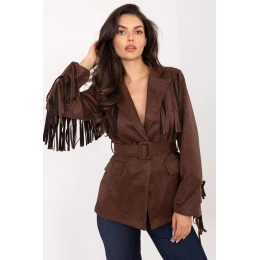 Elegantní a jedinečný sametový sako v casual stylu, ideální na každý den. Vyrobený z vysoce kvalitní směsi polyesteru a elastanu, je měkký, příjemný na dotek a skvěle se přizpůsobuje postavě. Model standardní délky s dlouhým rukávem a zapínáním na knoflík vypadá elegantně a žensky. Vložené polštářky na ramenou jemně zdůrazňují linii ramen a otočené límce dodávají celku klasický charakter. Sako má podšívku pro pohodlné nošení a zapínací pásek, který krásně zdůrazňuje pas. Šňůrky na rukávech a na přední straně jí dodávají módní, originální vzhled v duchu boho. Je to ideální volba pro ženy, které oceňují kombinaci elegance, pohodlí a originálního stylu, skvěle se hodí jak k džínům, tak k šatům.
