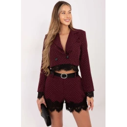 Elegantní dámský sako je unikátní model navržený pro významné příležitosti, kombinující klasický střih s efektními, ženskými ozdobami. Jeho krátká délka a propracované detaily dodávají outfitu elegantní a moderní charakter. Vyrobena z kombinace polyesteru a viskózy, sako vypadá elegantně, je příjemné na dotek a skvěle padne na postavě. Uvnitř je vybaveno podšívkou, co zvyšuje pohodlí nošení a kvalitu zpracování. Dalším konstrukčním prvkem jsou vestavěné polštářky na ramenou, které jemně modelují linii ramen a dodávají sakru formálnější, významný charakter. Dominantním dekoračním prvkem je aplikace s flitry, která efektně září a přitahuje pozornost. Přední část saka zdobí dvojitý řadový zapínání na knoflíky, dodávající celku klasický a elegantní vzhled. Dolní část saka je zdobena decentní krajkou, která se také objevuje na dlouhých rukávech, tvoříc harmonické a ženské doplnění celku. Je to ideální sako pro ženy, které milují eleganci s nádechem efektního lesku, skvělé na párty, slavnostní události a všechny významné příležitosti.