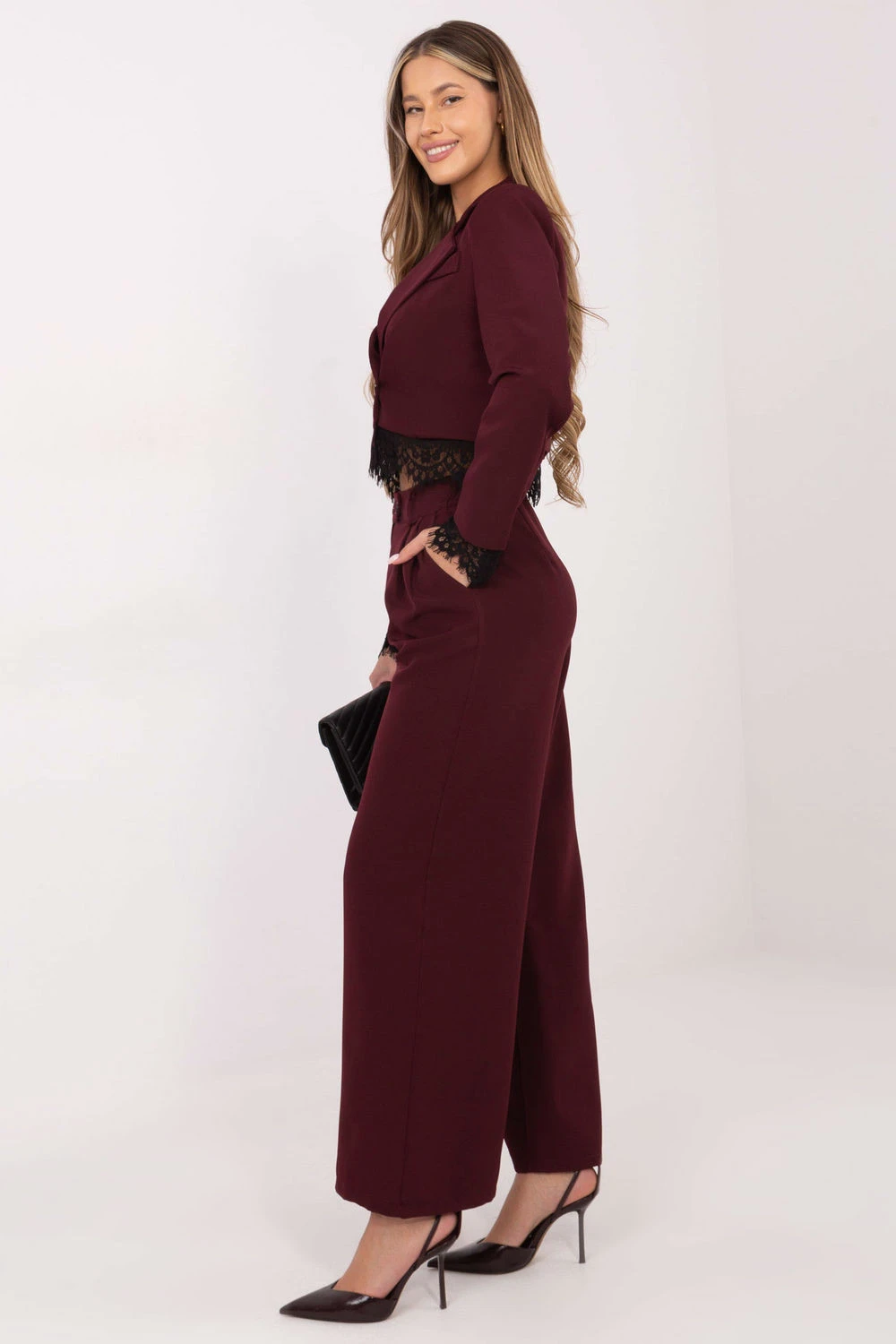 Elegantní dámský sako je jedinečný model vytvořený s ohledem na návštěvy, kombinující klasický tvar s efektními, ženskými zdobeními. Jeho krátká délka a propracované detaily dodávají outfitu elegantní a moderní charakter. Vyrobena z kombinace polyesteru a viskózy, sako vypadá elegantně, je příjemné na dotek a skvěle padne na postavě. Vnitřek je vybaven podšívkou, co zvyšuje pohodlí nošení a kvalitu zpracování. Dalším konstrukčním prvkem jsou vestavěné polštářky na ramenou, které jemně modelují linii ramen a dodávají saku formální a návštěvní charakter. Přední část saka zdobí dvojitý knoflíkový řádek, který dodává celku klasický, elegantní vzhled. Spodní část saka je zdobena decentní krajkou, která se také objevuje na dlouhých rukávech, vytvářejíc harmonický a ženský doplněk celku. Je to ideální sako pro ženy, které milují eleganci s nádechem efektního lesku, skvělé na večírky, slavnosti a jakékoliv návštěvní příležitosti.