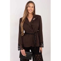 Elegantní dámský kabát s klasickým a propracovaným střihem, ideální na formální příležitosti i do práce. Hladký vzor jí dodává nadčasový charakter a pečlivě vybrané detaily zdůrazňují ženskou eleganci. Model je vyroben z vysoce kvalitního polyesteru s přídavkem elastanu, co zajišťuje odolnost, pružnost a pohodlí při nošení. Standardní délka a vestavěné ramenní polštářky krásně modelují siluetu a dodávají kabátu elegantní tvar. Dlouhý rukáv zdobený jemnou krajkou dodává celku decentní, dekorativní akcent. Kabát má jednořadé zapínání na knoflík a podšívku, díky čemuž skvěle padne na tělo. Další výhodou je pás s krajkou, který umožňuje uvázání v pasu a zdůraznění ženských tvarů. Celkový dojem doplňuje odnímatelná brož, která umožňuje volnou stylizaci, buď klasickou nebo ozdobnou. Jedná se o skvělou volbu pro ženy, které oceňují eleganci, funkčnost a výjimečné detaily v každodenních i formálních stylizacích.