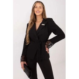 Elegantní dámský sako s klasickým a propracovaným střihem, ideální na formální příležitosti i do práce. Hladký vzor dodává saku nadčasový charakter, zatímco pečlivě vybrané detaily zdůrazňují ženskou eleganci. Model je vyroben z vysoké kvality polyesteru s přídavkem elastanu, co zaručuje pevnost, elasticitu a pohodlí nošení. Standardní délka a vestavěné ramenní polštářky krásně formují postavu a dávají saku elegantní tvar. Dlouhý rukáv s jemnou krajkou dodává celku decentní dekorativní akcent. Sako má jednořadé zapínání na knoflík a podšívku, díky čemuž se skvěle přizpůsobuje tělu. Další výhodou je pásek s krajkou, který umožňuje uvázání v pasu a zdůraznění ženských tvarů. Celkový dojem dokresluje odnímatelná brož, která umožňuje libovolnou stylizaci, ať už klasickou nebo ozdobnou. Jedná se o skvělou volbu pro ženy, které si cení elegance, funkčnosti a výjimečných detailů ve svých každodenních i formálních stylizacích.