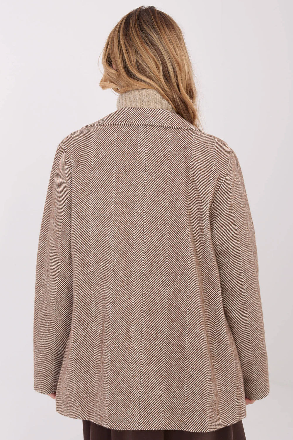 Dámský casualový sako je skvělou kombinací elegance a pohodlí, ideální na každý den i do práce v podzim/zima sezóně. Model je vyroben z vysoce kvalitní směsi kašmíru s přídavkem elastanu, co zajišťuje pohodlí nošení, měkkost a jemnou pružnost materiálu. Sako se vyznačuje klasickým vzorem jehličí, který dodává celku nadčasový charakter. Standardní délka, dlouhý rukáv a dvouradé zapínání na knoflíky zdůrazňují stylový střih a dělají model velmi elegantní, zároveň volný. Model má podšívku, která zvyšuje pohodlí nošení, a našité kapsy, které přidávají funkčnost a casualový akcent. Sako nemá podšívku, takže se skvěle hodí jako vrchní vrstva v chladnějších dnech nebo jako prvek vrstvených stylizací. Jedná se o univerzální volbu, která skvěle doplní jak klasické, tak i více každodenní outfit.