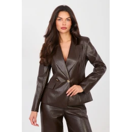 Elegantní dámský blejzr z ekokože je moderním návrhem pro každodenní stylizace i práci. Vyrobený z materiálu vysoce kvalitního materiálu, který kombinuje viskózu a polyuretan, působí elegantně a zároveň poskytuje pohodlí při nošení. Model s standardní délkou, dlouhým rukávem a klasickými límci zdůrazňuje nadčasový charakter střihu. Hladký vzor dodává blejzru univerzální vzhled, díky čemuž se snadno kombinuje s mnoha outfity. Dvojitý řadový knoflík je stylovým doplňkem a dodává celku eleganci. Další výhodou je podšívka, která zvyšuje pohodlí nošení a estetiku zpracování. Blejzr skvěle ladí jak se kalhotami, tak s sukní nebo šaty, vytvářející moderní a souvislé stylingy.