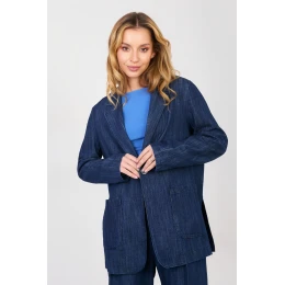 Tento dámský džínový sako je univerzálním prvkem šatníku, který skvěle kombinuje klasický střih s každodenním volným stylem. Vyrobený z vysoce kvalitní bavlny s přídavkem elastanu poskytuje pohodlí nošení, odpovídající pružnost a dobře padnoucí střih. Lehká konstrukce bez podšívky z ní dělá ideální model pro jarně letní období. Sako má klopy a jednořadé zapínání na knoflík, které dávají celku nadčasový charakter. Nášivkové kapsy zdůrazňují džínový styl a zvyšují funkčnost, boční rozparky dole zase zajišťují volnost pohybu a lehkost formy. Hladký materiál umožňuje snadné kombinování sak s různými kousky šatníku od šatů, přes kalhoty, až po ležérní sestavy s tričkem. Jedná se o sako, které skvěle doplní každodenní outfit, dodávajíc jim lehkost a městský charakter. Ideální do práce, na procházky nebo setkání s přáteli vždy, když chcete vypadat stylově a cítit se pohodlně.