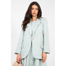 Elegantní dámský sako standardní délky, které skvěle kombinuje klasiku s jemným nádechem originality. Model se vyznačuje různorodou texturou materiálu a efektním tiskem květin, dodávajícím celku výjimečný ženský charakter. Vyrobeno z vysoce kvalitní směsi polyesteru a viskózy, zaručuje pohodlné nošení, odolnost a estetický vzhled po dlouhou dobu. Dlouhý rukáv a límce sáčka zdůrazňují nadčasový střih, jednoradé zapínání na knoflík přidává eleganci a univerzálnost. Sako má podšívku, díky čemuž se skvěle přizpůsobuje postavě a zaručuje pohodlí při nošení. Ideální volba jak pro kancelářské stylizace, tak pro výjimečné příležitosti, kdy chcete vypadat stylově a elegantně.