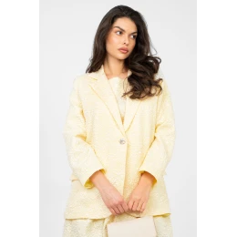 Elegantní dámský sakko standardní délky, který skvěle kombinuje klasiku s jemným nádechem originality. Model se vyznačuje různorodou texturou materiálu a efektním tiskem květin, který celku dodává výjimečný ženský charakter. Vyrobený z vysoce kvalitní směsi polyesteru a viskózy, poskytuje pohodlí nošení, odolnost a estetický vzhled po dlouhou dobu. Dlouhý rukáv a límce zdůrazňují nadčasový střih, a jednořadé zapínání na knoflík přidává eleganci a univerzálnost. Sakko má podšívku, díky čemuž se skvěle přizpůsobuje postavě a zaručuje pohodlí při nošení. Je to ideální volba jak pro kancelářské stylizace, tak pro speciální příležitosti, kdy chcete vypadat stylově a s elegancí.