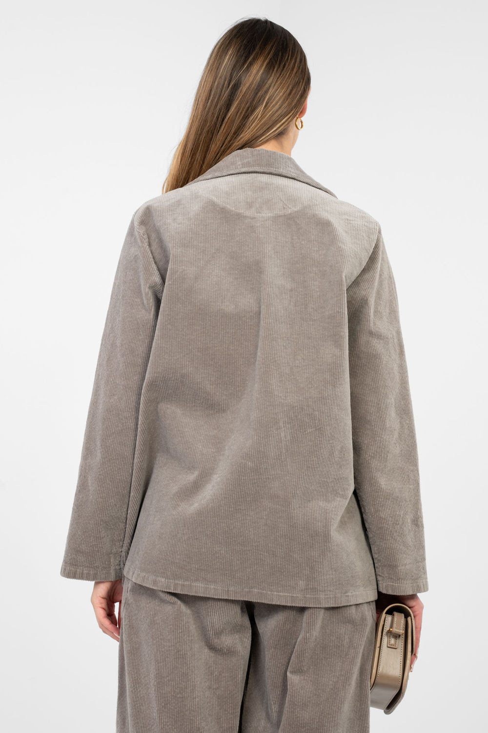Elegantní dámský štručkový sakó v casualovém provedení, který se skvěle hodí jak do každodenního života, tak do práce. Tento model spojuje volnost s elegancí, díky čemuž si ho snadno sladíte s mnoha styly, od klasických látkových kalhot po džíny nebo olověnou sukni. Vyrobený z vysoce kvalitní bavlny s přídavkem elastanu zajišťuje pohodlí a jemnou pružnost, co se promítá do komfortu po celý den. Hladký vzor zdůrazňuje jeho univerzální charakter a štručková struktura dodává subtilní strukturu a módní akcent. Model má dlouhý rukáv a klasické límce, které dávají saku nadčasový styl. Standardní délka se dobře tvaruje na postavě a jednořadé zapínání na knoflík zdůrazňuje elegantní střih. Imitace kapes jsou estetickým završením, zachovávajícím minimalistický charakter designu. Ideální volba pro ženy, které oceňují pohodlí, styl a funkčnost ve svých každodenních i pracovních outfitech.