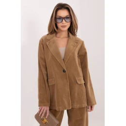 Elegantní dámský sametový sako v casual stylu, které se skvěle hodí jak do každodenního nošení, tak i do práce. Tento model spojuje volnost s elegancí, díky čemuž ho snadno sladíte s mnoha styly, od klasických látkových kalhot po džíny nebo olověnou sukni. Vyrobený z vysoce kvalitní bavlny s přídavkem elastanu, zajišťuje pohodlí při nošení a jemnou pružnost, co se promítá do pohodlí po celý den. Hladký vzor zdůrazňuje jeho univerzální charakter, a sametová struktura dodává subtilní texturu a módní akcent. Model má dlouhý rukáv a klasické špičaté límce, které dávají sakru nadčasový styl. Standardní délka se dobře tvaruje na postavě, a jednořadé zapínání na knoflík zdůrazňuje elegantní střih. Imitace kapes dodávají estetické dokončení, zachovávají minimalistický charakter designu. Ideální nabídka pro ženy, které oceňují pohodlí, styl a funkčnost v každodenních i kancelářských outfitech.