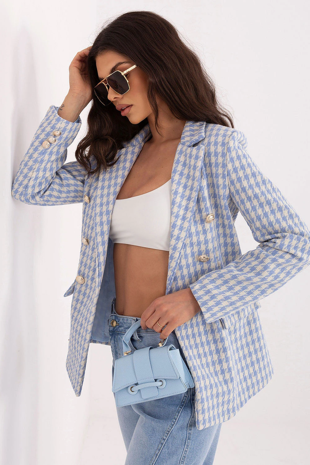 Sako v klasickém a nadčasovém střihu, které skvěle doplní jak elegantní, tak každodenní stylizace. Pepita vzor jí dodává výrazný charakter a módní vzhled. Model standardní délky vyrobený z odolného polyesteru poskytuje pohodlí a estetický vzhled po dlouhou dobu. Dvouřadé zapínání na knoflíky a límce sáčka zdůrazňují elegantní styl saka. Dlouhý rukáv a vsazené polštářky na ramenou dodávají siluetě jasnou strukturu a zdůrazňují linii ramen. Další výhodou je podšívka, která zvyšuje pohodlí nošení a ovlivňuje lepší uspořádání modelu.