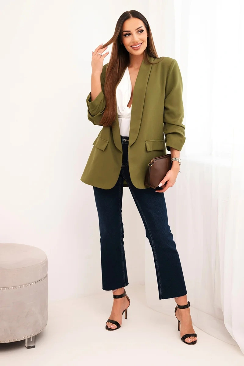 Sako s klopami elegantní olivově zelené