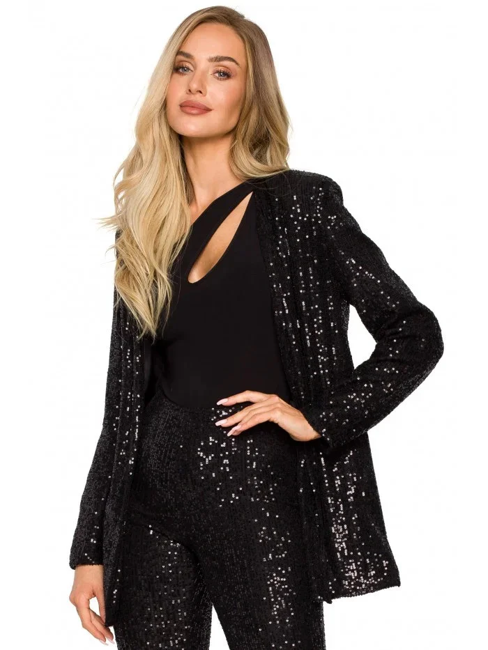 Pletené sako bez s otevřenou přední částí černé model 21379806 - BeWear