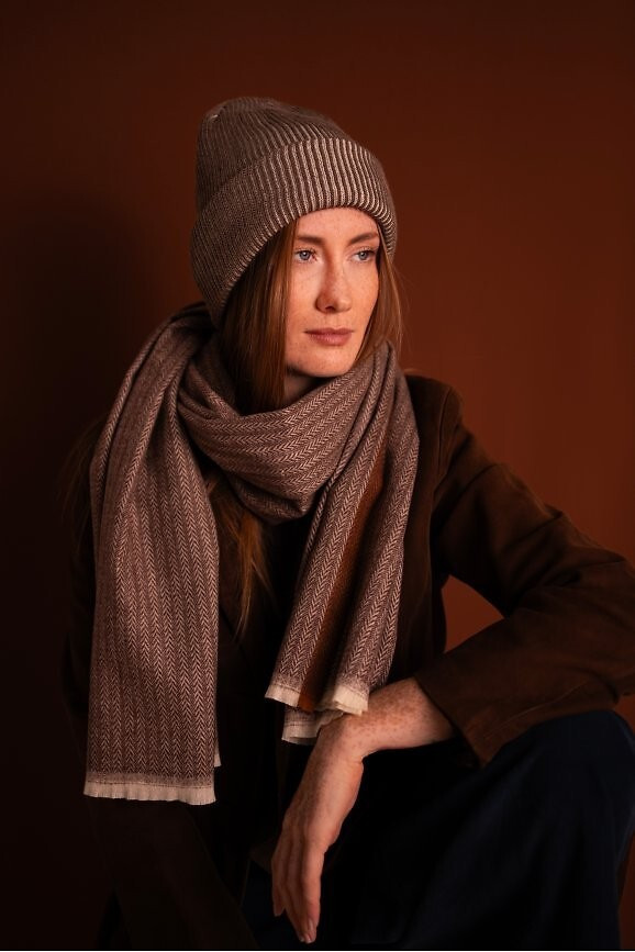 - tlumené barvy a jemné střapce dělají šálu stylovou a nadčasovou