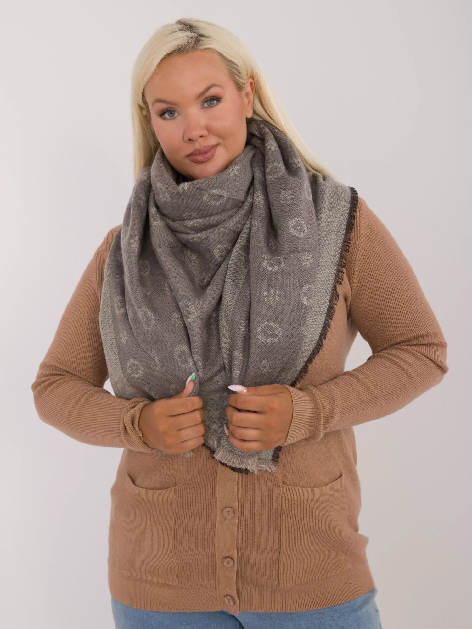rozměry šály: délka - 148 cm, šířka - 142 cm