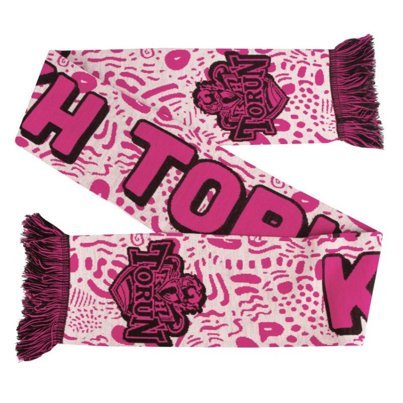 szal KH Toruń PINK Wyróżnij się na trybunach odważnymi barwami klubu Szal KH Toruń PINK to wyjątkowa propozycja dla fanek, które lubią wyróżniać się w tłumie i podkreślać swoje przywiązanie do klubu w nowoczesny sposób. Intensywna różowa kolorystyka w połączeniu z kontrastowymi detalami oraz dużym napisem „KH TORUŃ” sprawia, że szal natychmiast przyciąga wzrok. Dynamiczny wzór inspirowany sportowym stylem dodaje mu charakteru, a miękki materiał zapewnia komfort noszenia podczas chłodniejszych dni. Główne cechy: Wyjątkowa kolorystyka: Odważny różowy design pozwala wyróżnić się w tłumie i nadaje kibicowskiej stylizacji świeżości. Duży napis klubowy: Czytelne „KH TORUŃ” wyraźnie podkreśla lojalność wobec drużyny. Nowoczesny wzór: Graficzne detale nadają szalowi energiczny, sportowy wygląd. Przyjemny w dotyku materiał: Zapewnia ciepło i wygodę zarówno podczas meczów, jak i w codziennym użytkowaniu. Szal KH Toruń PINK to stylowy i wyrazisty g