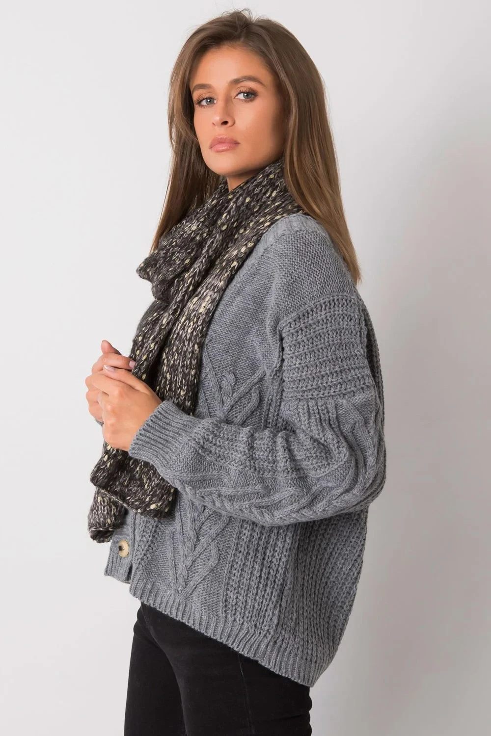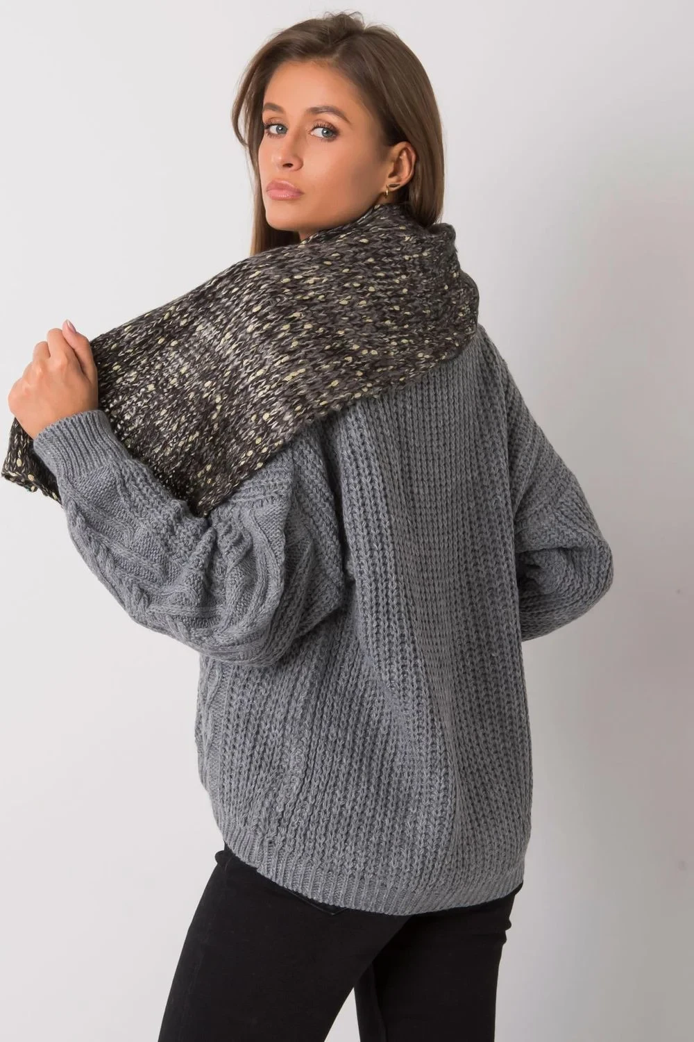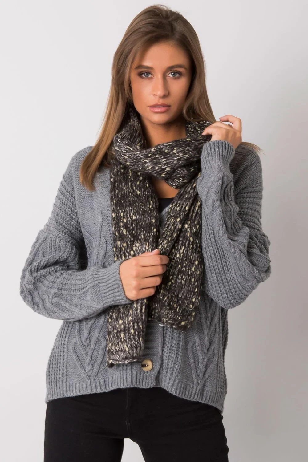 Šála s kovovou nití v černé barvě.