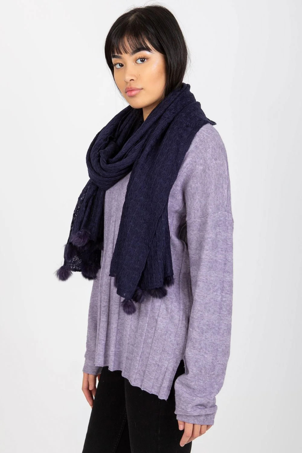 Ažurová dlouhá šála s ozdobnými bambulkami, ideální na zimu.