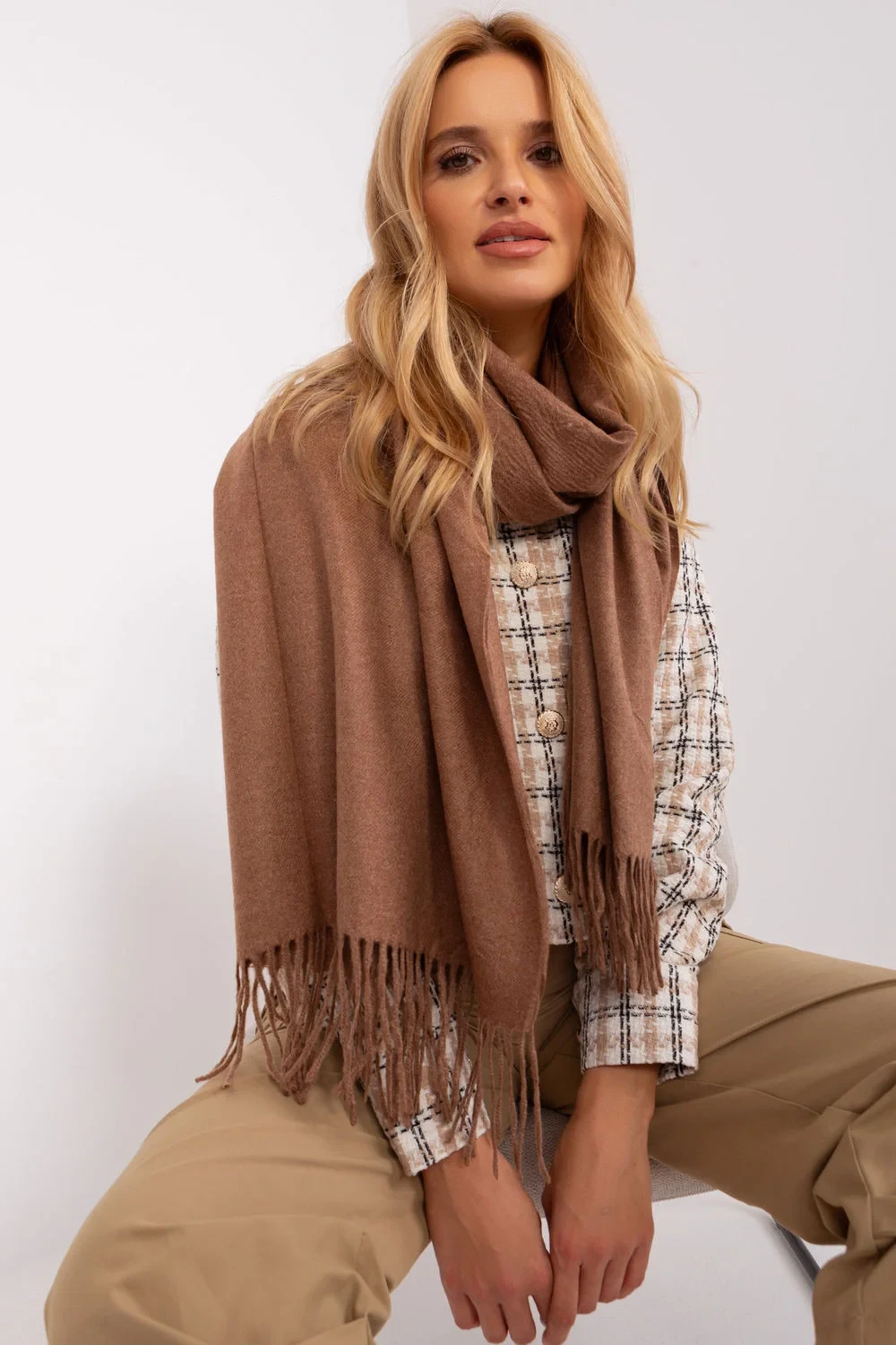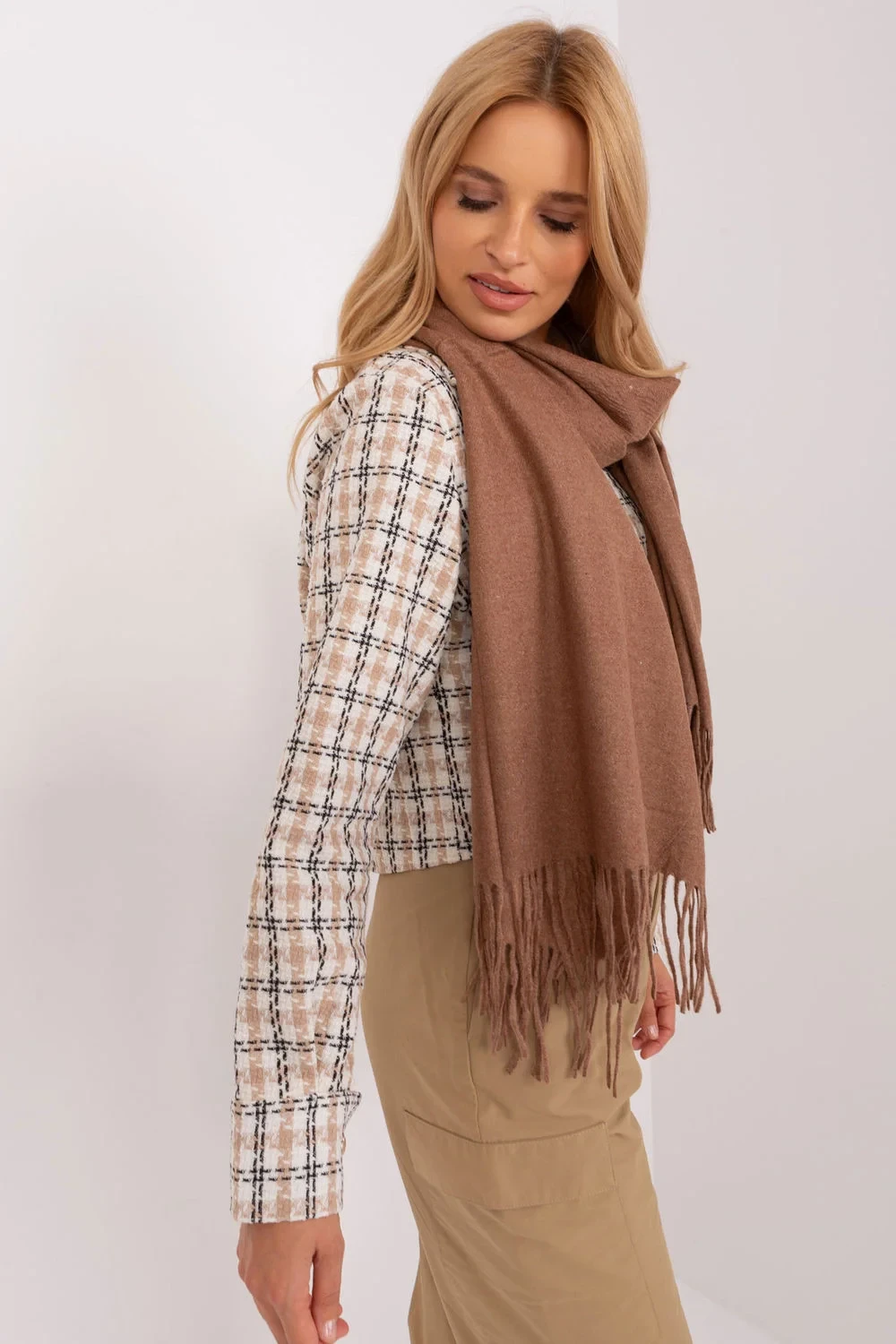 Hřejivá dlouhá šála s ozdobnými střapci, ideální na zimu.