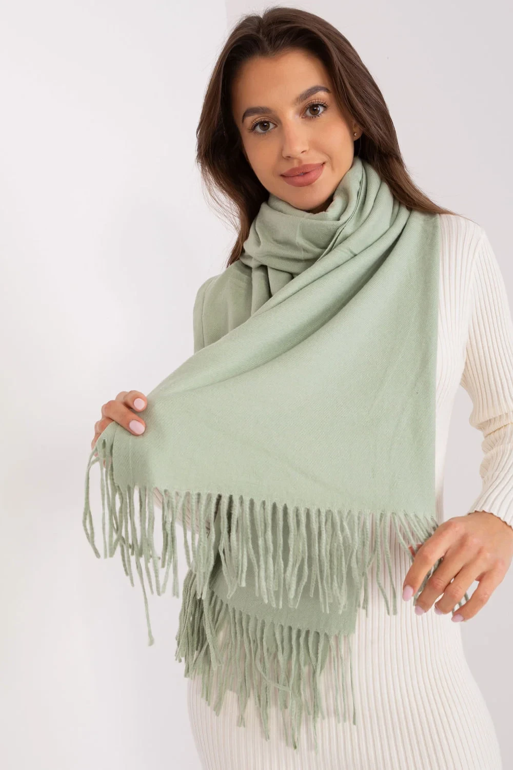 Hřejivá dlouhá šála s ozdobnými střapci, ideální na zimu.