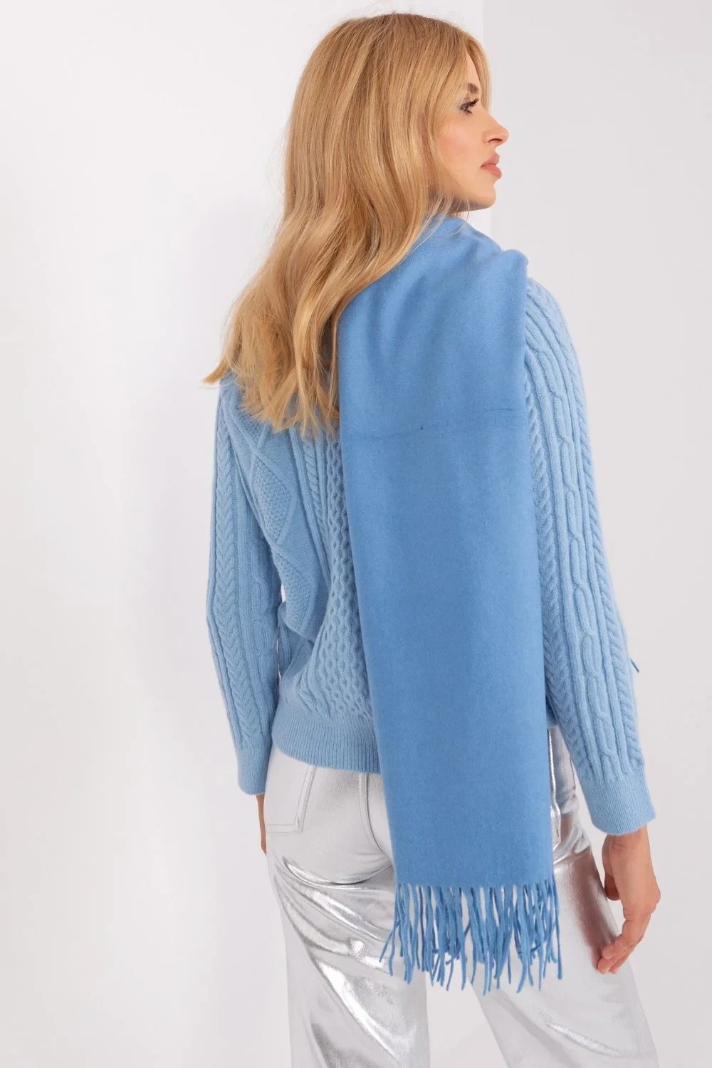 Hřejivá dlouhá šála s ozdobnými střapci, ideální na zimu.