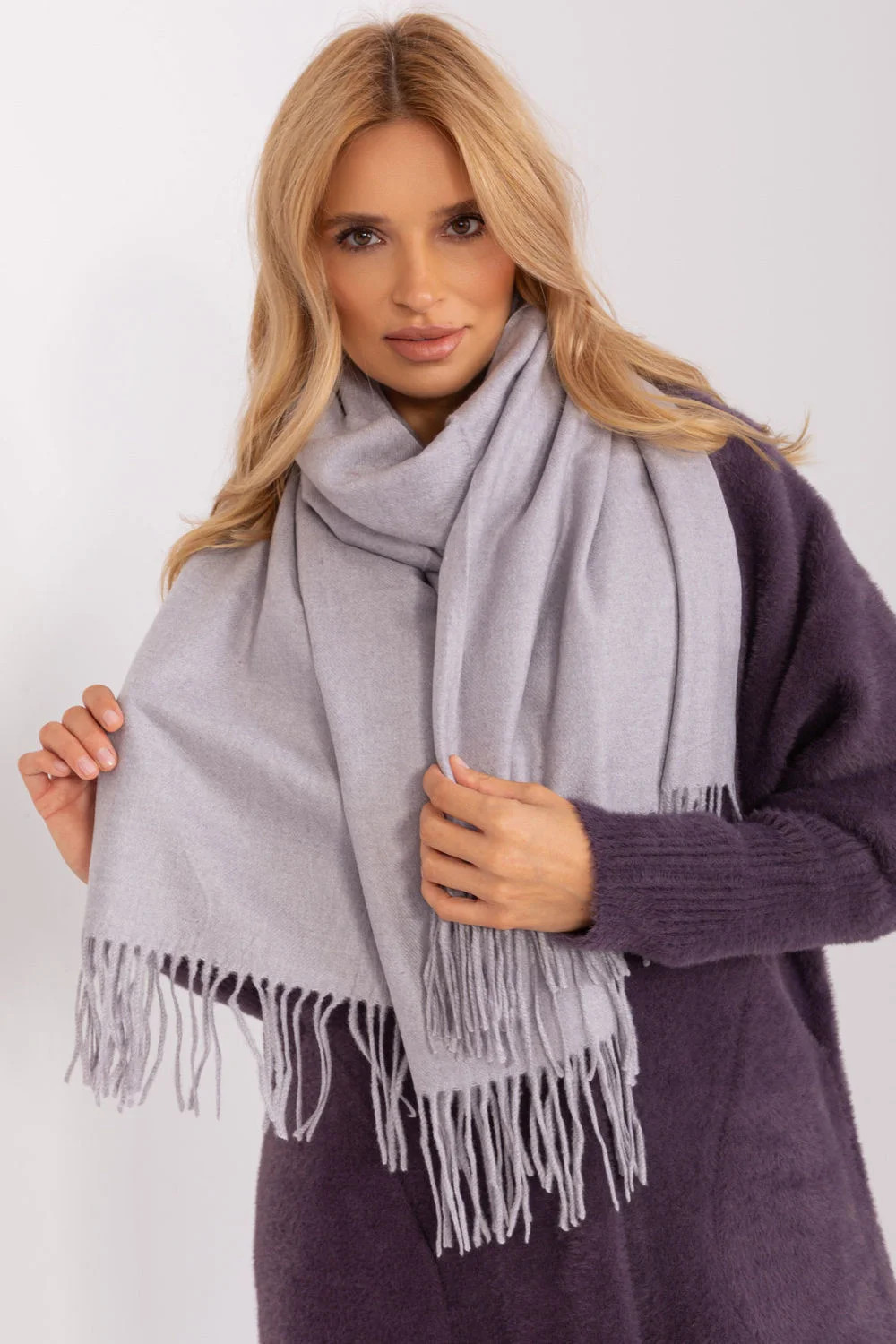 Hřejivá dlouhá šála s ozdobnými střapci, ideální na zimu.