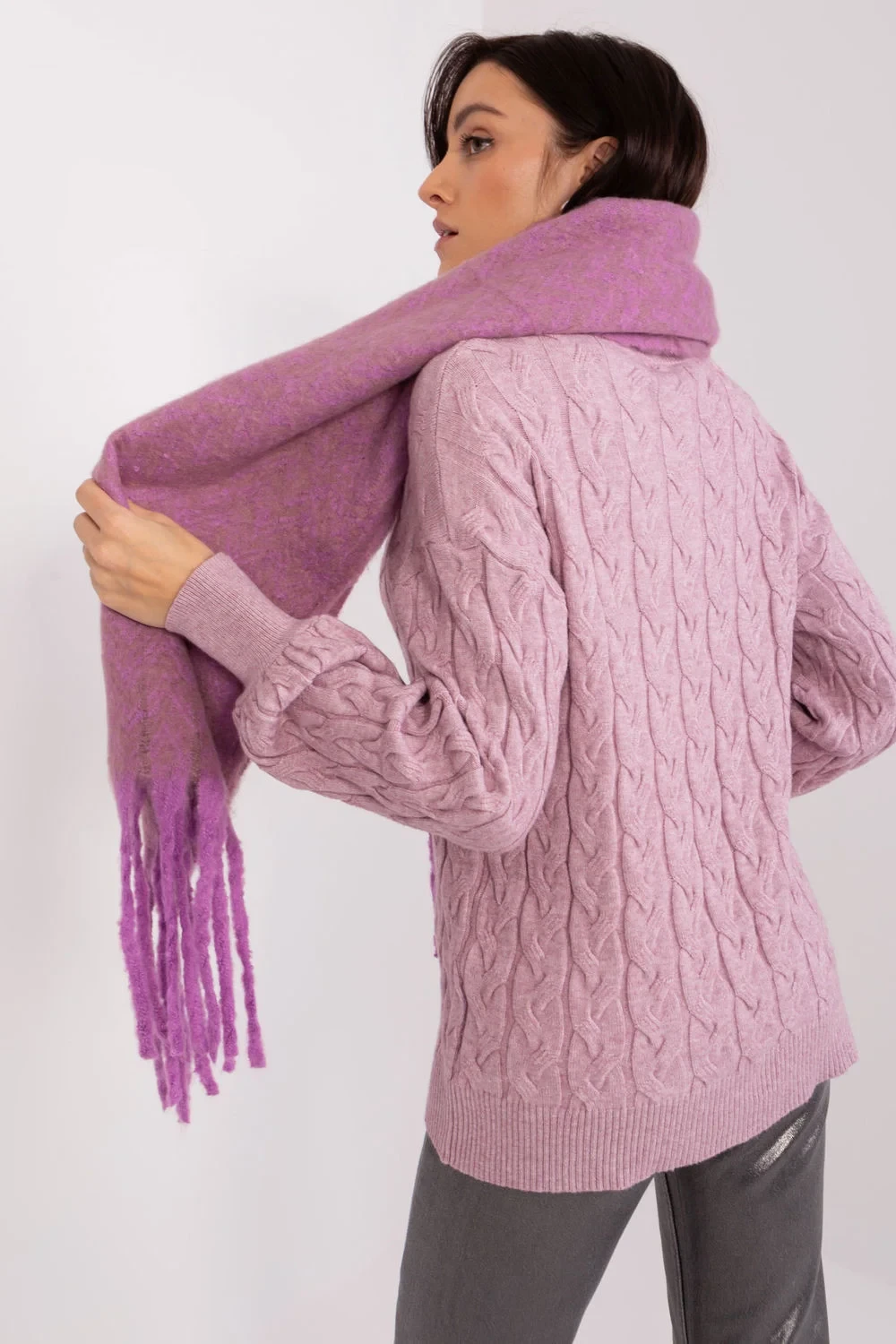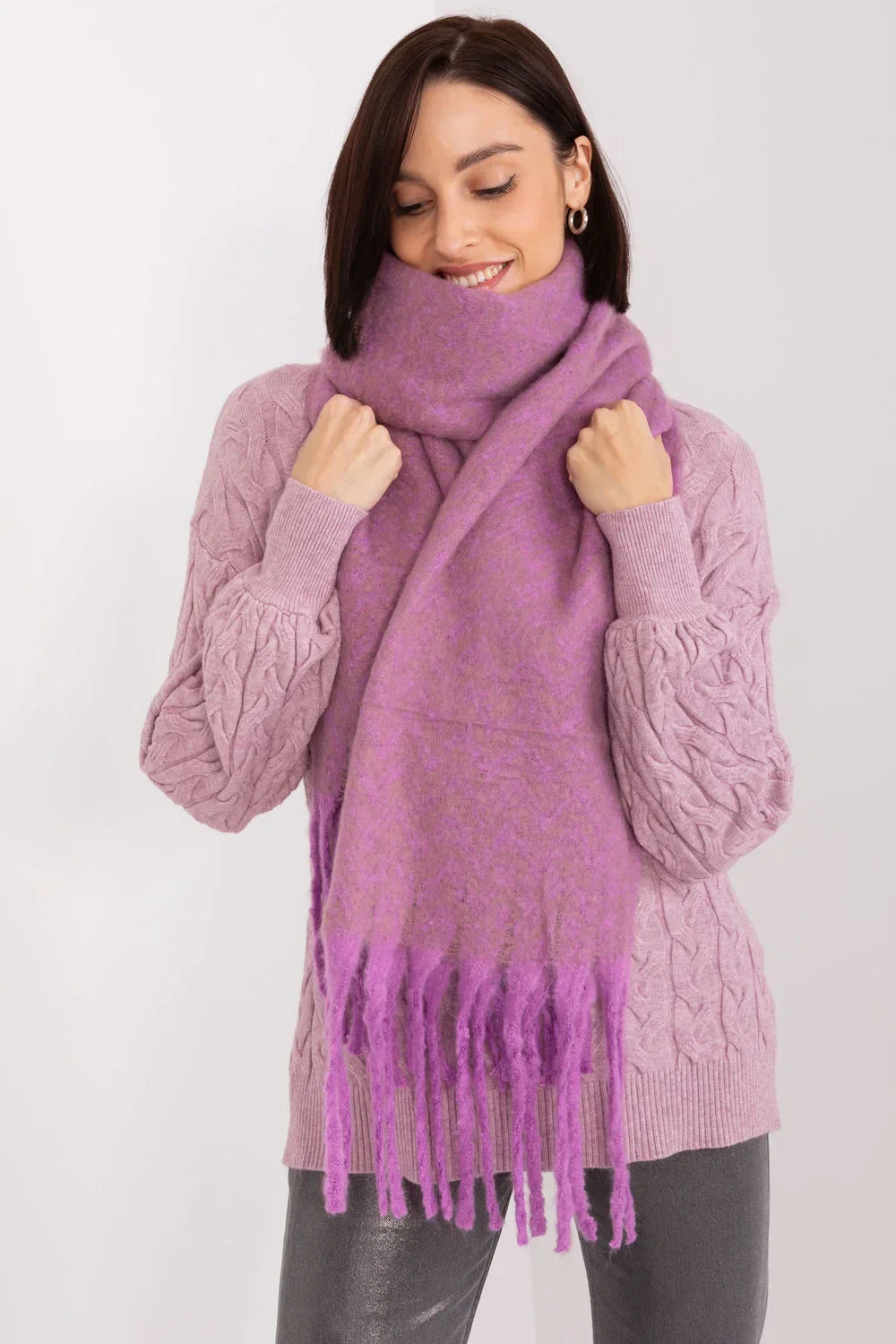 Tato dlouhá šála s geometrickým vzorem je dokonalým doplňkem vašeho podzimního a zimního šatníku. Je vyrobena z odolného polyesteru a je nejen praktická, ale také stylová. Geometrický vzor dodává šále moderní a atraktivní vzhled, takže se skvěle hodí k různým stylům. Střapce dodávají šále jemnost a lehkost. Délka šály umožňuje různé způsoby nošení, můžete si ji omotat kolem krku, nechat ji volně na ramenou nebo ji použít jako další vrstvu v chladnějších dnech. Ať už ji budete nosit jakkoli, tato šála bude stylovým doplňkem vašeho šatníku a dodá mu charakter a teplo.