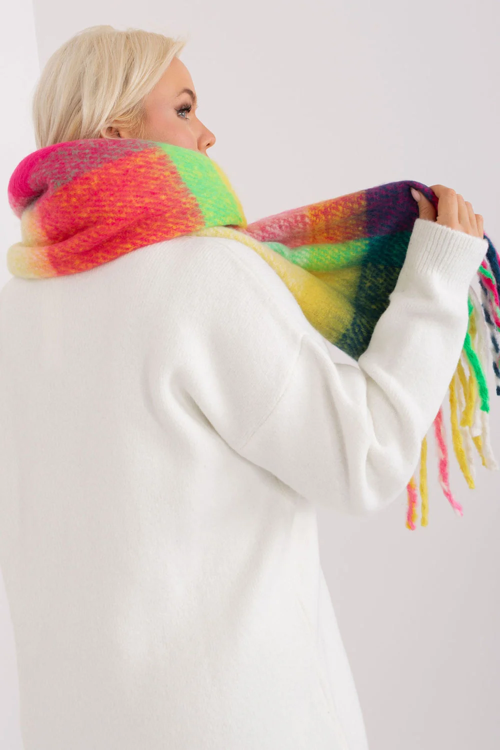 Tato dlouhá barevná kostkovaná šála je dokonalým doplňkem vašeho podzimního/zimního šatníku. Je vyrobena z odolného polyesteru a je nejen praktická, ale také stylová. Střapce jí dodávají jemnost a lehkost. Délka šály umožňuje různé způsoby nošení, můžete si ji omotat kolem krku, nechat ji volně na ramenou nebo ji použít jako další vrstvu v chladnějších dnech. Ať už ji budete nosit jakkoli, tato šála bude stylovým doplňkem vašeho šatníku a dodá mu charakter a teplo.