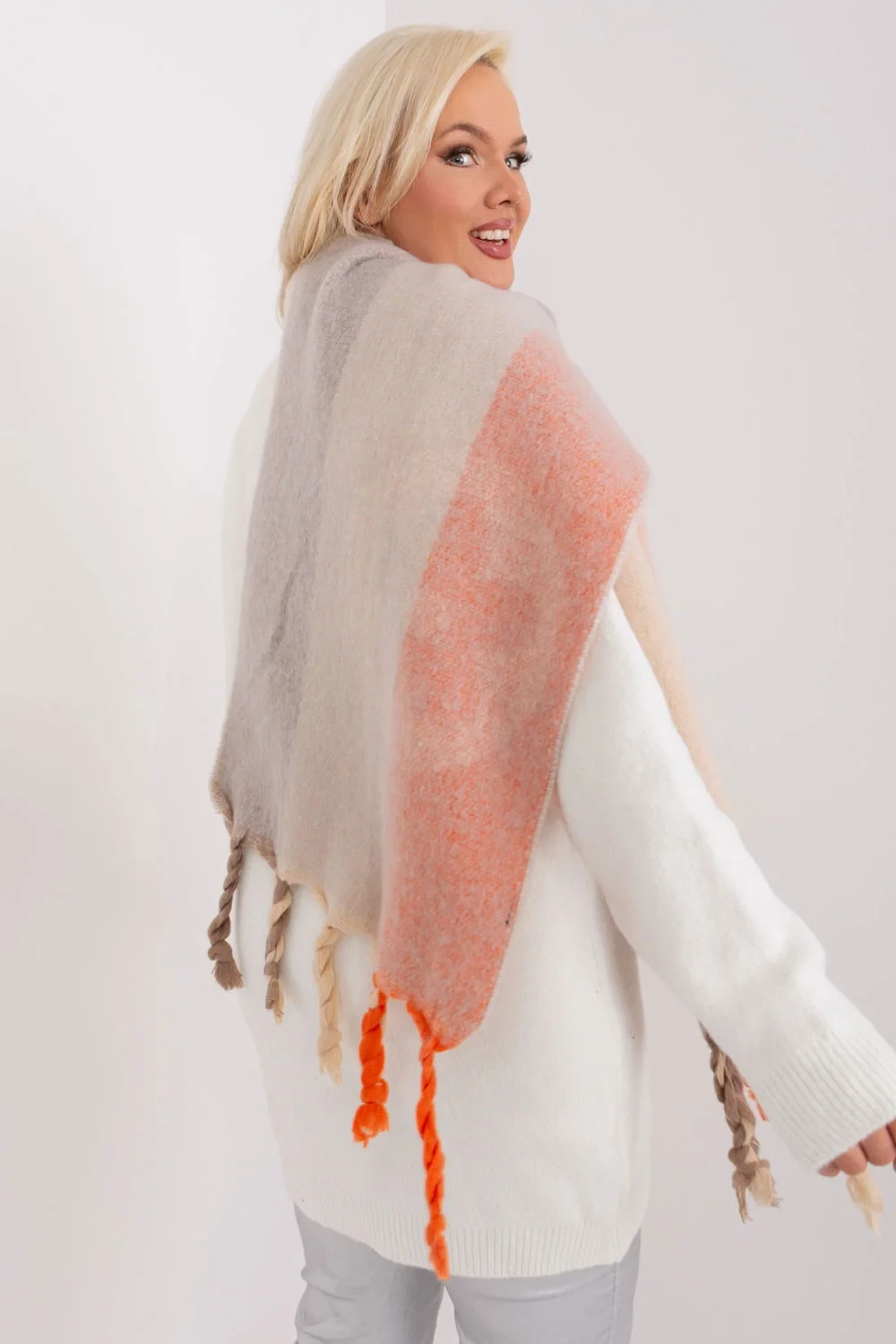 Tato dlouhá šála s ozdobnými pruhy a zajímavými vzory je dokonalým doplňkem vašeho podzimně-zimního šatníku. Je vyrobena z odolného polyesteru a je nejen praktická, ale také stylová. Střapce jí dodávají jemnost a lehkost. Délka šály umožňuje různé způsoby nošení, můžete si ji omotat kolem krku, nechat ji volně na ramenou nebo ji použít jako další vrstvu v chladnějších dnech. Ať už ji budete nosit jakkoli, tato šála bude stylovým doplňkem vašeho šatníku a dodá mu charakter a teplo.