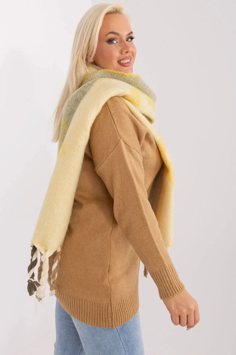 Tato dlouhá šála s ozdobnými pruhy a zajímavými vzory je dokonalým doplňkem vašeho podzimně-zimního šatníku. Je vyrobena z odolného polyesteru a je nejen praktická, ale také stylová. Střapce jí dodávají jemnost a lehkost. Délka šály umožňuje různé způsoby nošení, můžete si ji omotat kolem krku, nechat ji volně na ramenou nebo ji použít jako další vrstvu v chladnějších dnech. Ať už ji budete nosit jakkoli, tato šála bude stylovým doplňkem vašeho šatníku a dodá mu charakter a teplo.