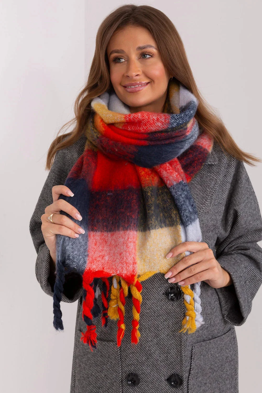 Tato dlouhá barevná kostkovaná šála je dokonalým doplňkem vašeho podzimního/zimního šatníku. Je vyrobena z odolného polyesteru a je nejen praktická, ale také stylová. Střapce jí dodávají jemnost a lehkost. Délka šály umožňuje různé způsoby nošení, můžete si ji omotat kolem krku, nechat ji volně na ramenou nebo ji použít jako další vrstvu v chladnějších dnech. Ať už ji budete nosit jakkoli, tato šála bude stylovým doplňkem vašeho šatníku a dodá mu charakter a teplo.