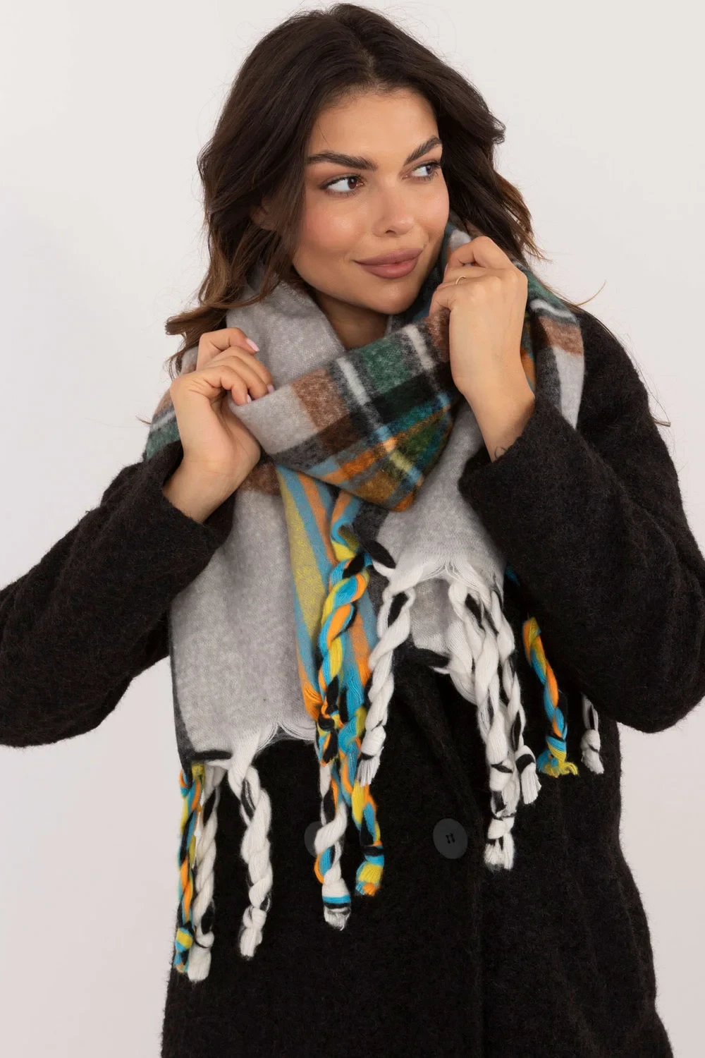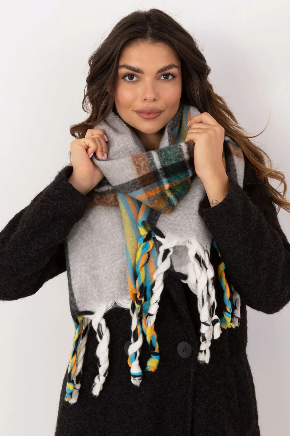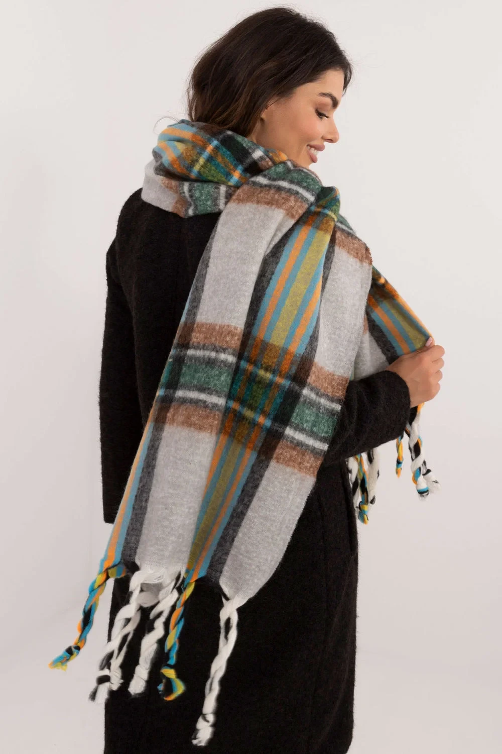 Elegantní šála o délce 182 cm z polyesteru v karom vzoru, ideální na chladnější dny. Vyrobena z vysoce kvalitního materiálu, poskytuje teplo a pohodlí. Ozdobné stuhy mu dodávají módní, stylový akcent, který obohacuje každý zimní outfit. Tento univerzální šála spojuje funkčnost s elegancí, čímž se stane skvělým doplňkem k mnoha různým outfitům.