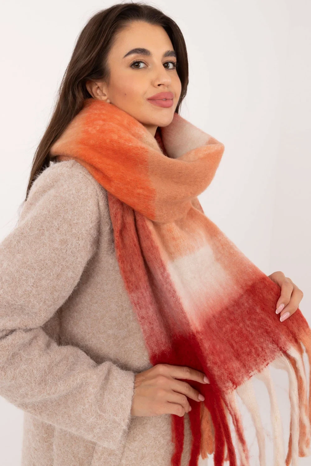Elegantní šála o délce 217 cm z polyesteru v klasickém kostkovaném vzoru, ideální na chladnější dny. Vyrobený z vysoce kvalitního materiálu, poskytuje teplo a pohodlí. Dekorativní řasy mu dodávají módní, stylový akcent, který obohacuje každý zimní outfit. Tento univerzální šála spojuje funkčnost s elegancí, čímž se stává skvělým doplňkem k mnoha různým outfitům.