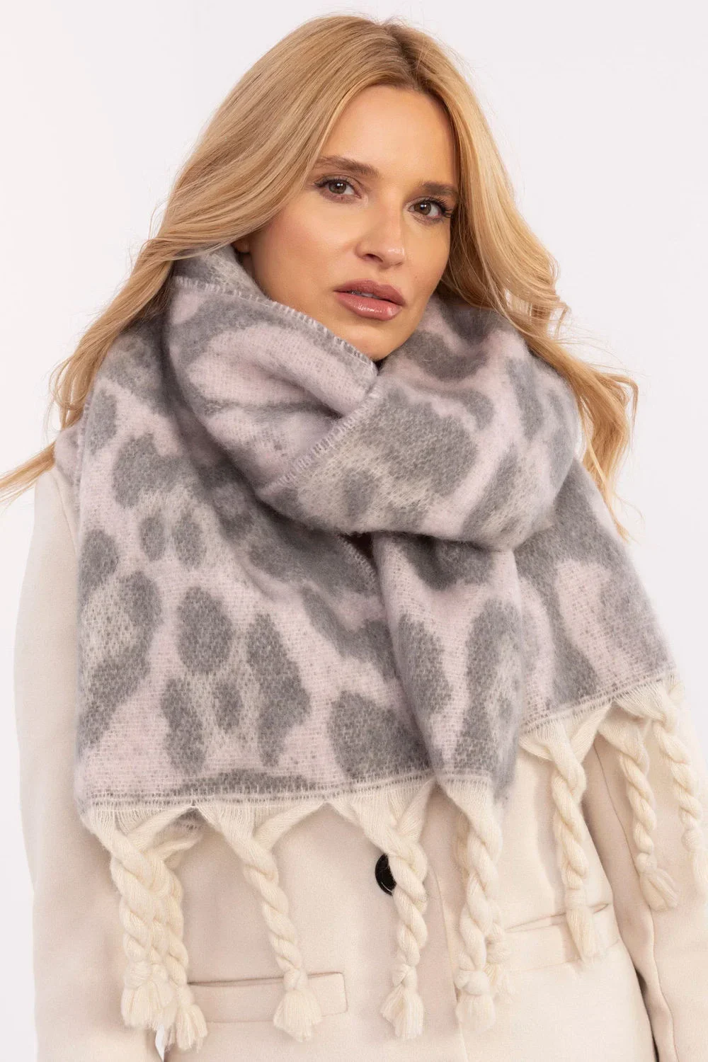 Elegantní šátek o délce 214 cm z polyesteru s motivem zvířat, ideální na chladnější dny. Vyrobený z vysoce kvalitního materiálu, poskytuje teplo a pohodlí. Dekorativní franže mu dodávají módní, stylový akcent, který obohacuje každý zimní outfit. Tento univerzální šátek spojuje funkčnost s elegancí, co ho činí skvělým doplňkem k mnoha různým outfitům.