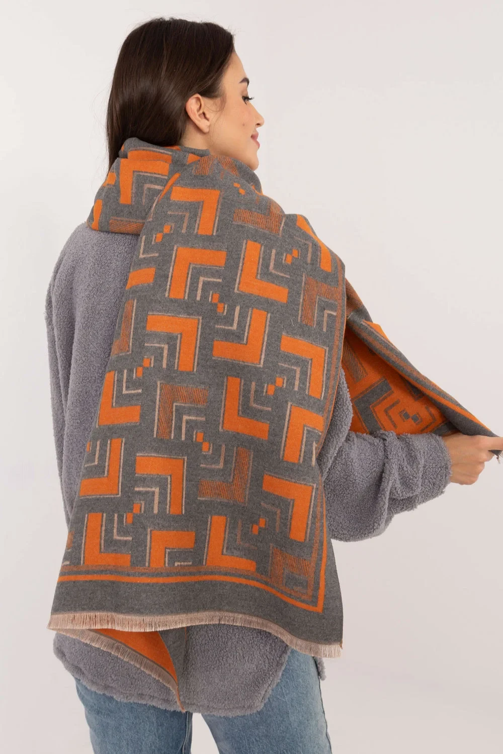 Elegantní šátek o délce 190 cm vyrobený z měkké a příjemné viskózy. Vyznačuje se geometrickým vzorem, který dodává moderní vzhled a eleganci každému outfitu. Jemné, malé franže na koncích šátku mu dodávají lehkost a originalitu. Ideální na chladnější dny, skvěle se hodí jak do každodenních, tak do elegantnějších kombinací.